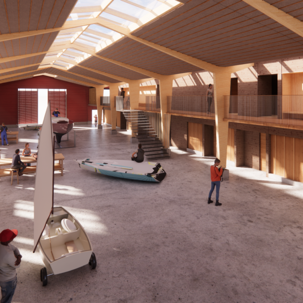 Når vi om cirka et år kan åbne dørene til det nye hus, vil det blandt andet rumme en bådhal med ca. 7 meter til loftet. Her bliver der plads til forskellige mindre joller, og hallen vil derudover kunne bruges til reparationer, arrangementer og aktiviteter på tværs af klubben.